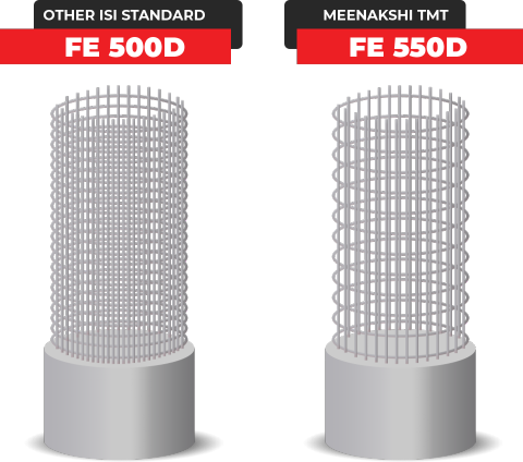 Meenakshi TMT bars have a flexible-pearlite core and a robust martensite external surface that makes the bar more weldable and ductile.Â